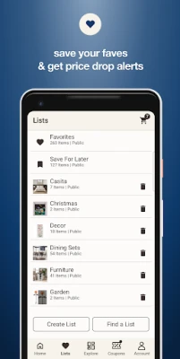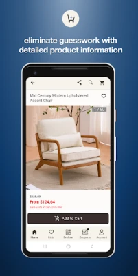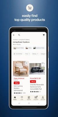 • Shop for furniture and decor with app-exclusive deals and discounts.