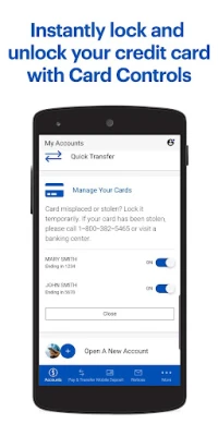 • Control – It’s easy to monitor your account and quickly move money, pay bills, and turn your card on or off