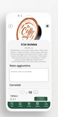 Con la nostra piattaforma, puoi scoprire un mondo di aroma e gusto direttamente dalla comodità di casa tua. Scegli tra una varietà di cialde, capsule e grani di caffè provenienti dalle migliori regioni del mondo, e trova la miscela perfetta per soddisfare il tuo palato esigente. Inoltre, esplora la nostra selezione di macchinette da caffè di alta qualità per preparare la tua bevanda preferita con la massima comodità. Non importa se sei un appassionato del caffè espresso o un amante del caffè lungo, con la nostra app, ogni giorno è un viaggio alla scoperta dei migliori aromi del caffè. Scarica l'app ora e porta l'esperienza del barista direttamente nella tua cucina!"