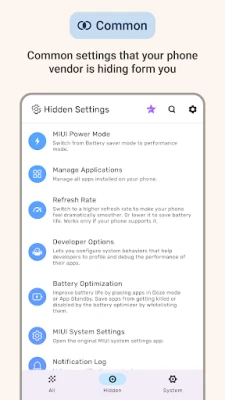 • Hidden Settings: Discover powerful hidden settings and secret device settings, similar to "MIUI downloader news and apps" or "miuies – roms & apps" hidden settings feature.